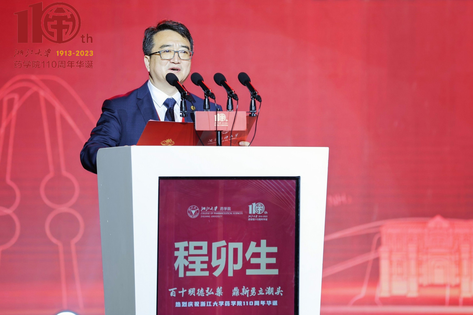 程卯生代表沈阳药科大学和国内兄弟院校单位,对浙江大学药学院110周年华诞表示祝贺。他说,多年来,沈阳药科大学与浙江大学药学院始终保持着良好互动往来。他衷心期待,沈阳药科大学和浙江大学药学院以及兄弟院校一起,携手融入“健康中国”战略,共同在药学教育领域守正创新、深耕细作。
