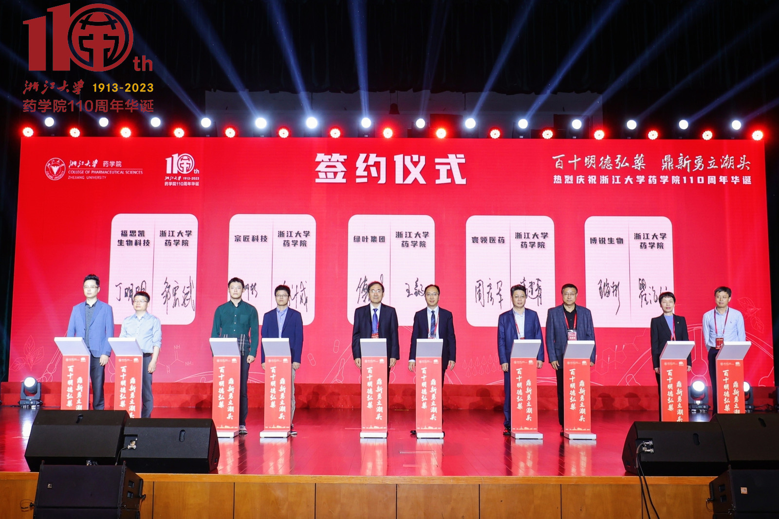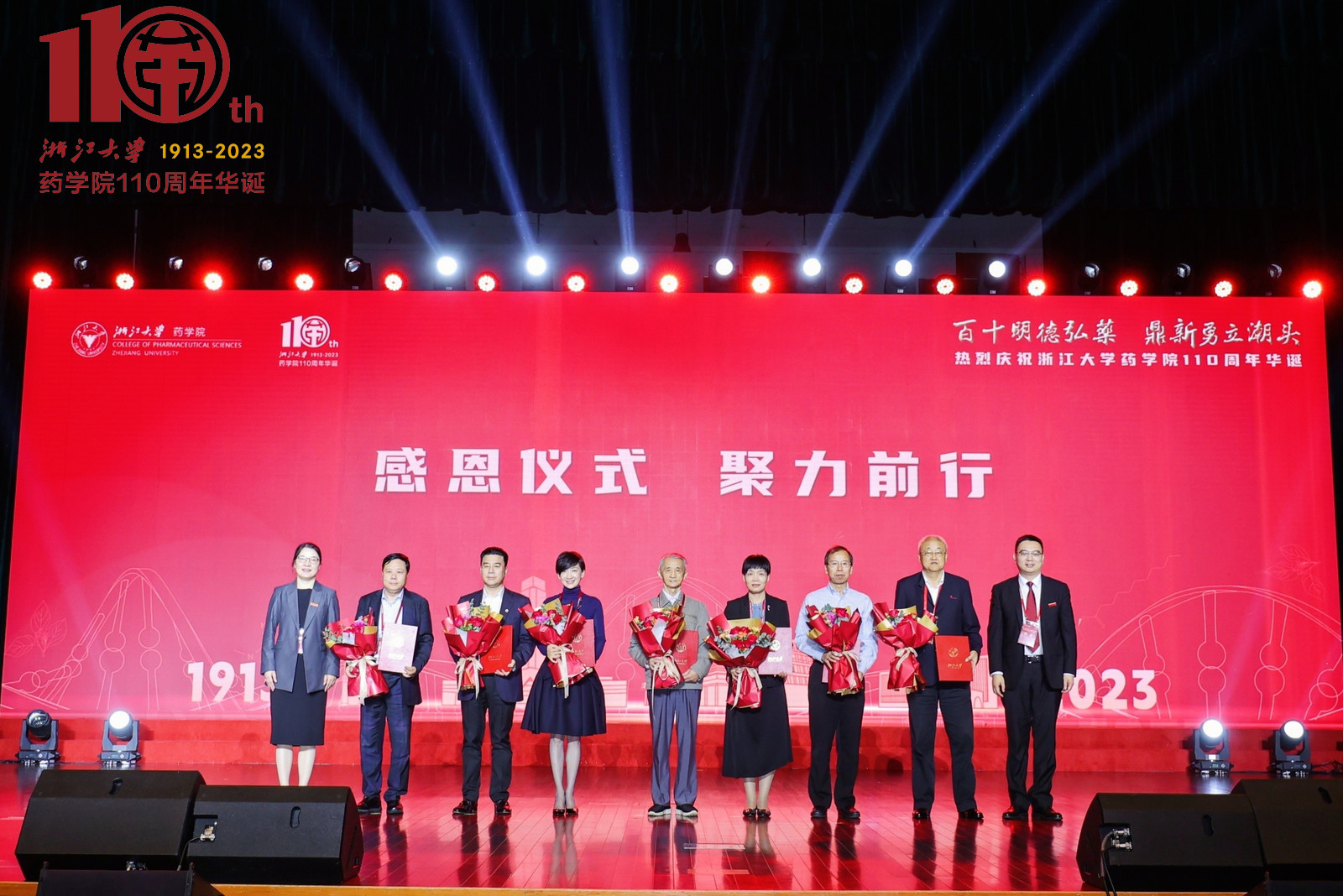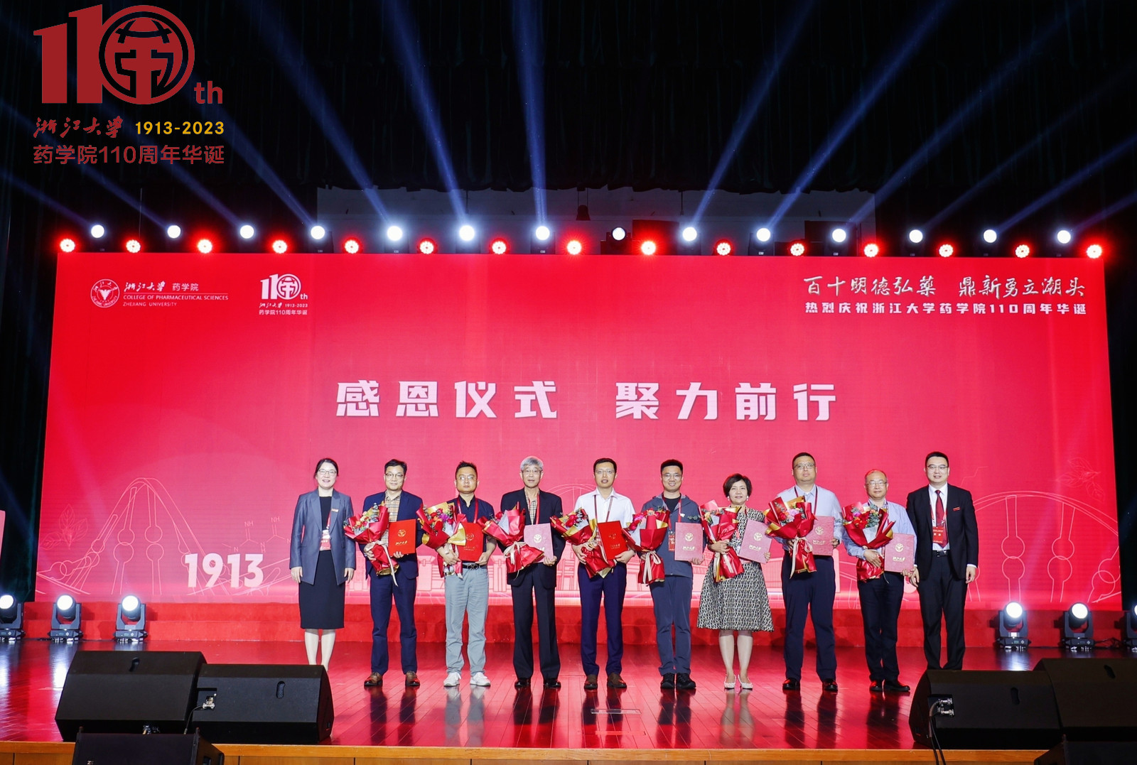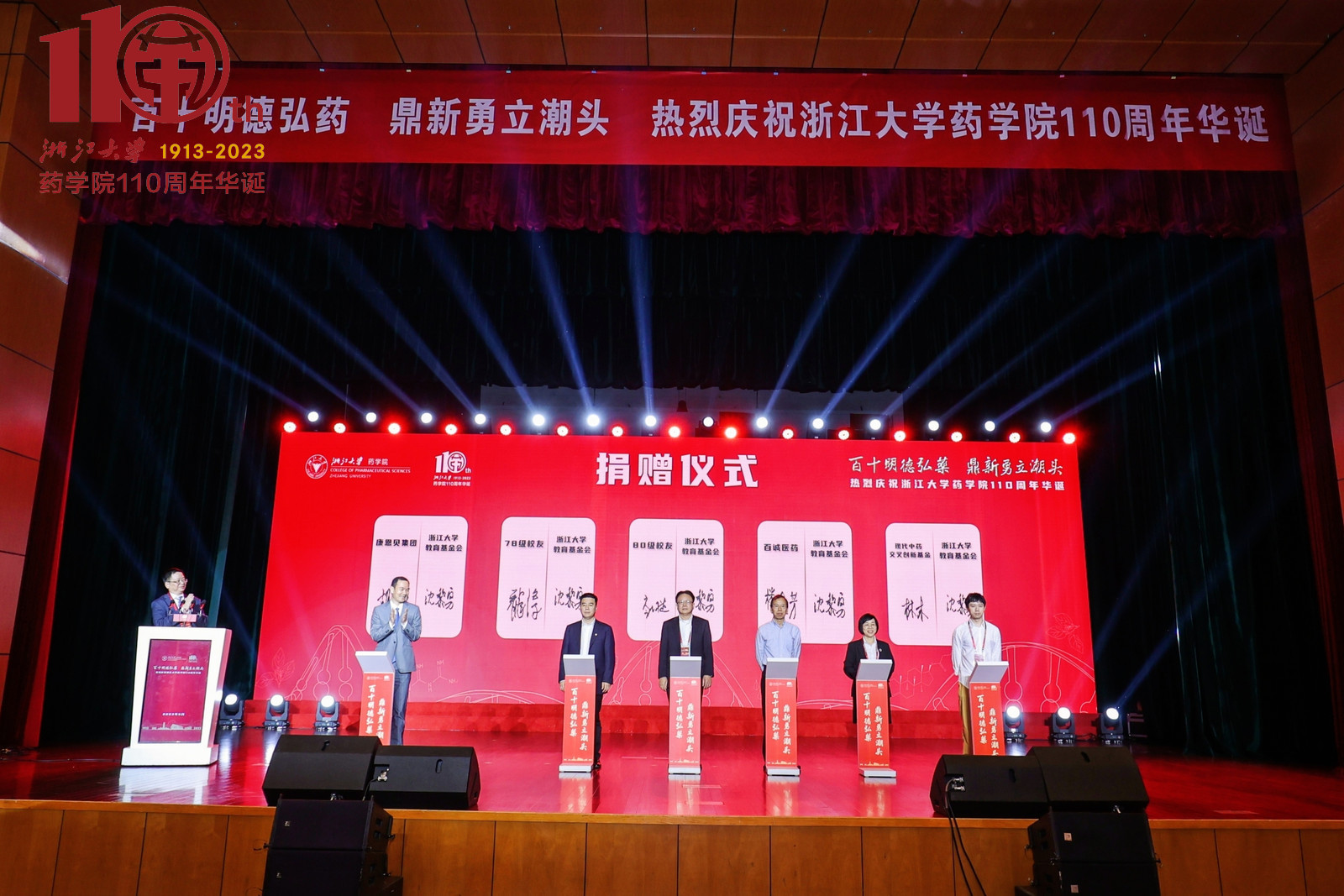 百十院庆之际,78级校友、康恩贝集团董事长胡季强,北京尚诚知识产权代理有限公司董事长龙淳代表78级集体,80级校友岑均达,百诚医药董事长楼金芳,森林包装集团股份有限公司董事长助理林木为学院发展注入新的力量。浙江大学发展联络办主任沈黎勇代表学校接受捐赠。