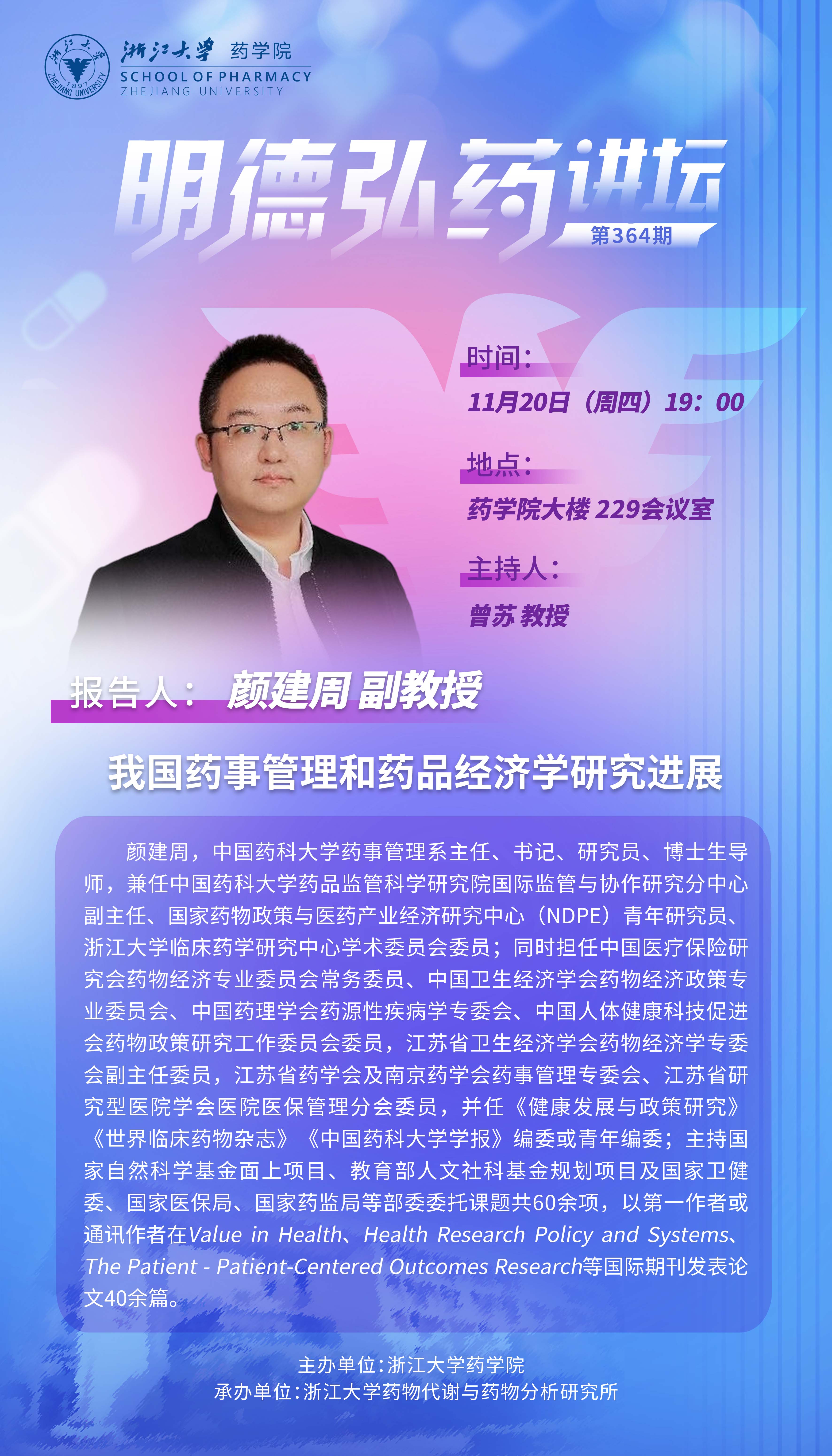 明德弘药讲坛(第364期):中国药科大学 颜建周 副教授 学术报告