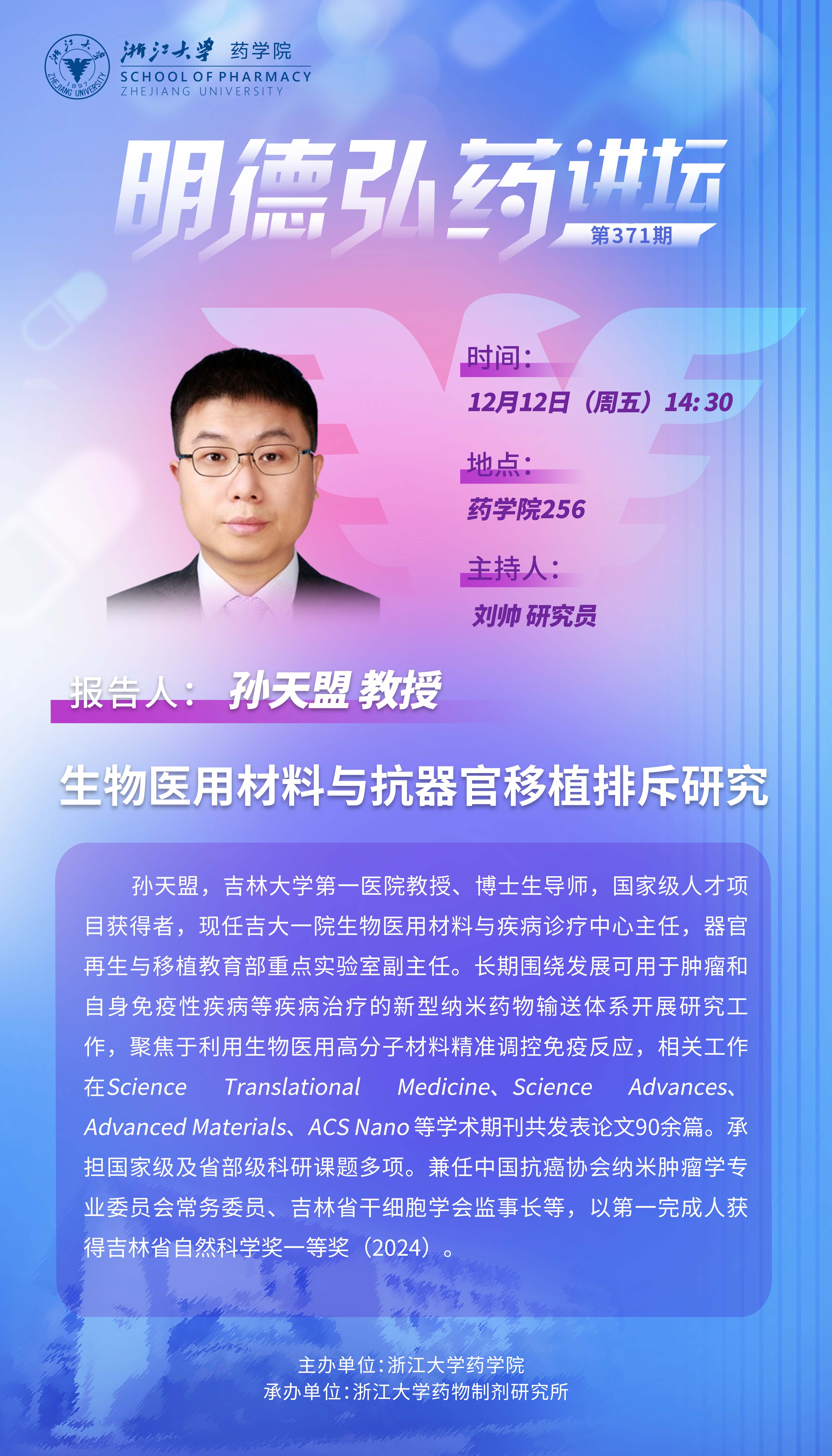 明德弘药讲坛(第371期):吉林大学孙天盟教授学术报告