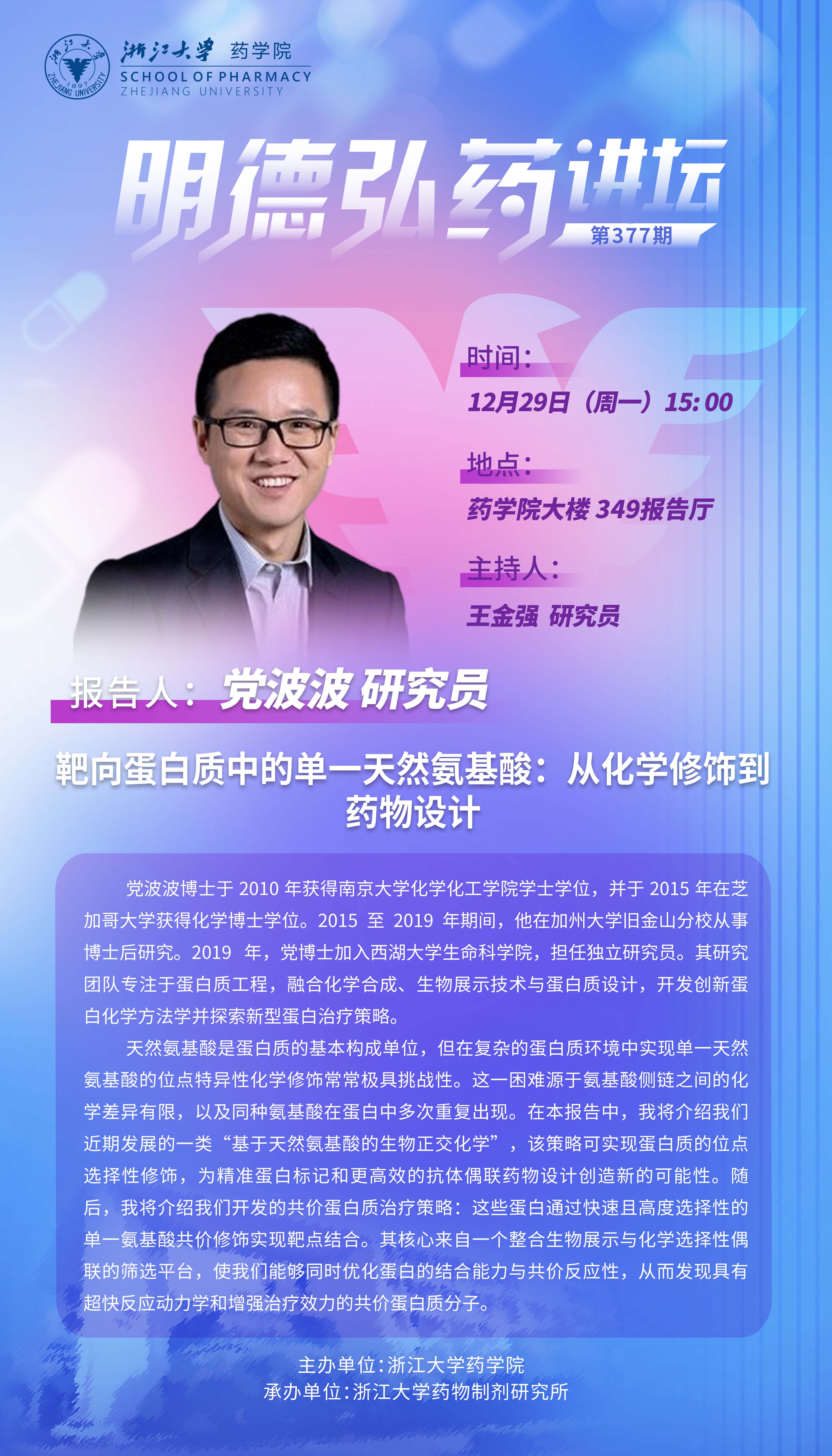 明德弘药讲坛(第377期):西湖大学党波波研究员学术报告